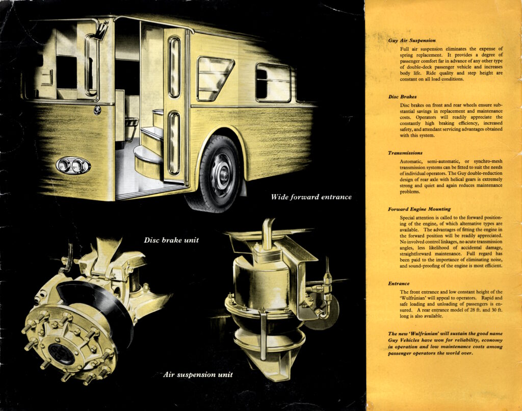 The Wulfrunian was, at it’s launch in 1959, the most advanced passenger vehicle in the world. It featured air suspension and disc brakes at a time when these were not generally applied to bus designs. Sadly, the advances proved to be less reliable than the previous designs, and caused Guy to lose reputation and orders for the Wulfrunian. The cost of the rectifications, and also problems in the South African market eventually led to the companies financial ruin.